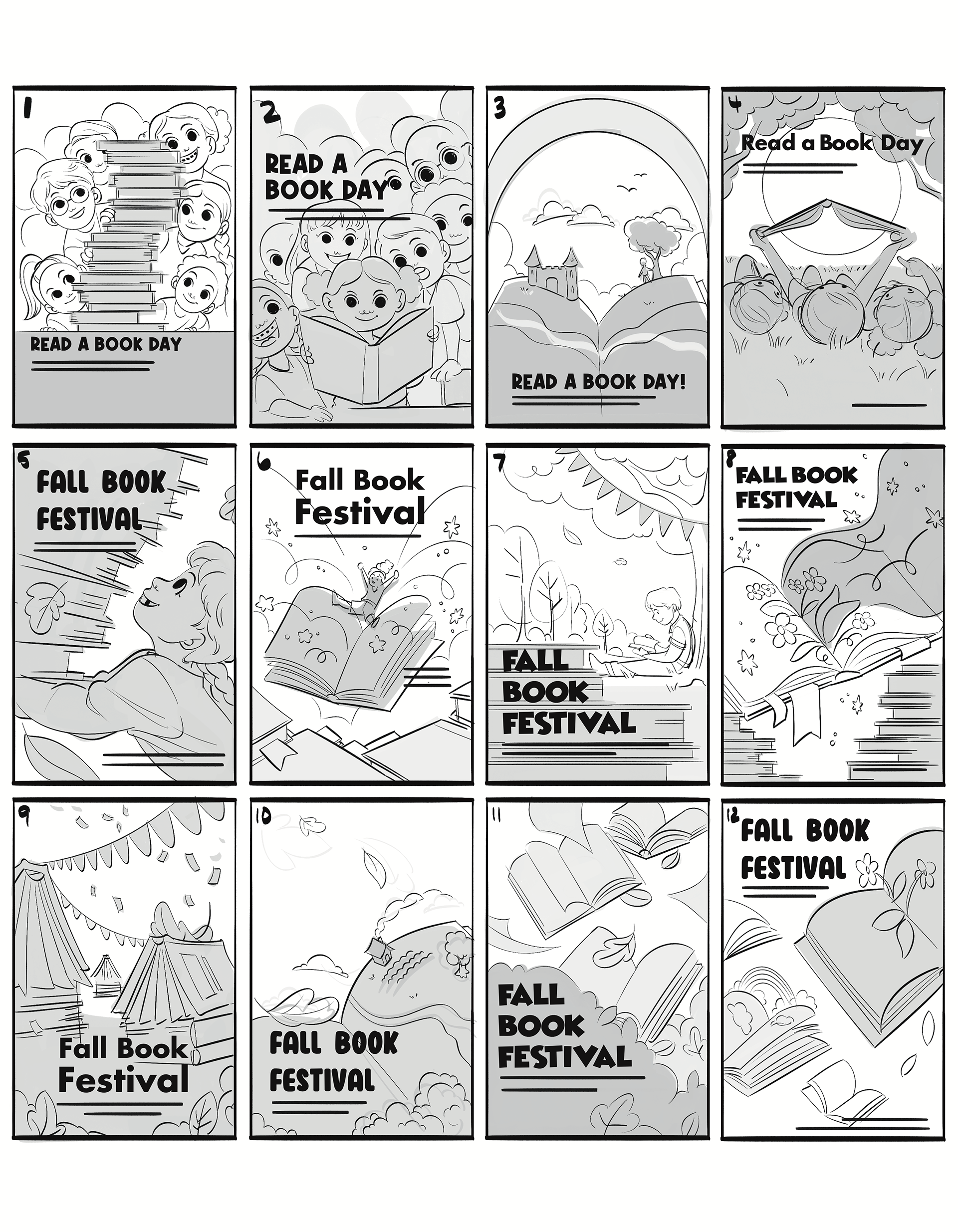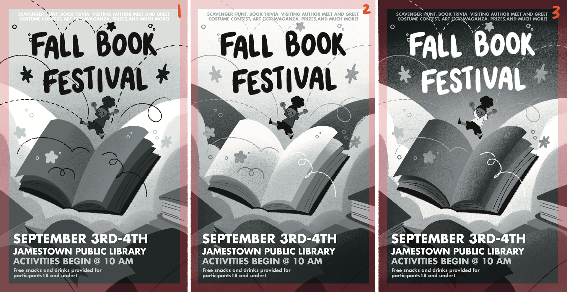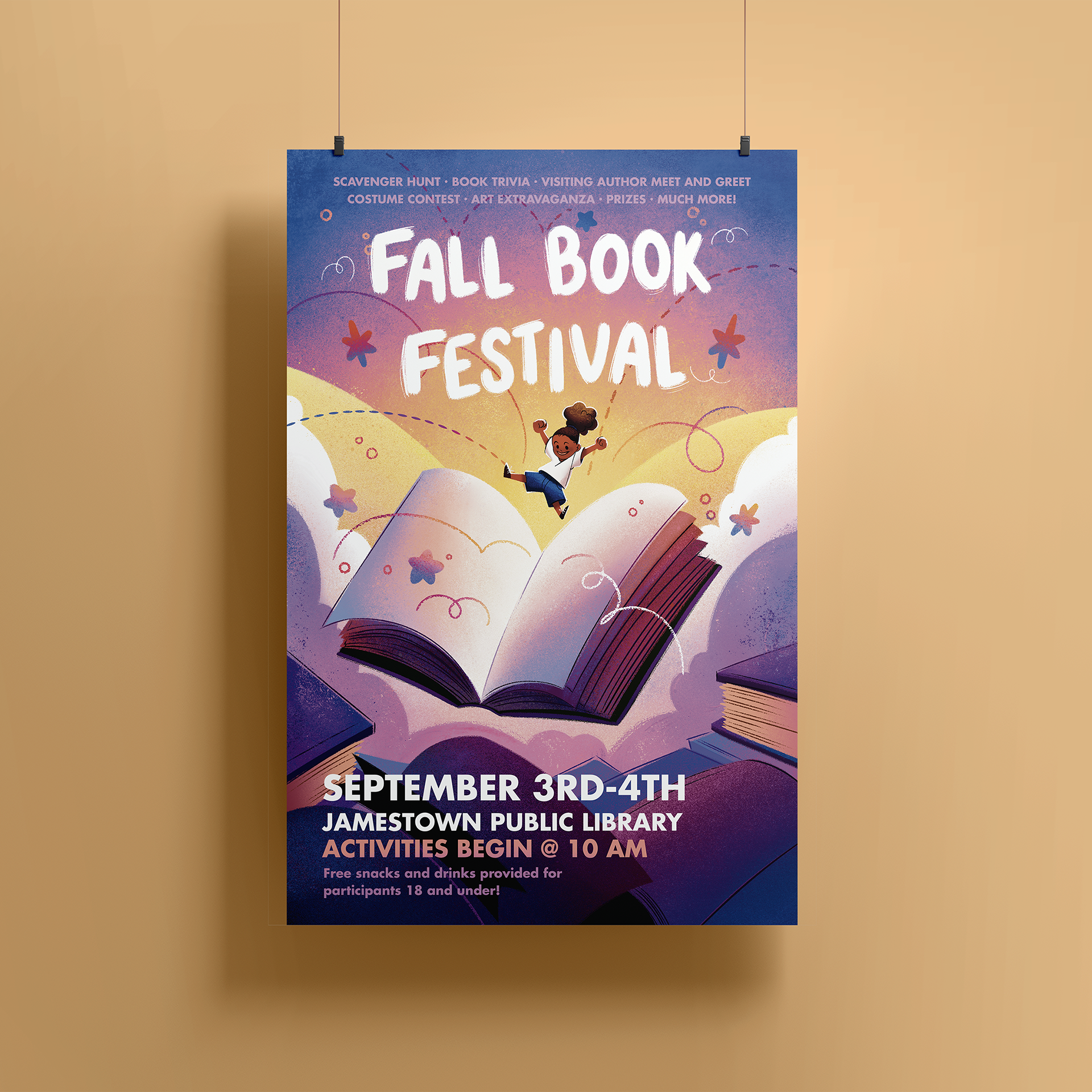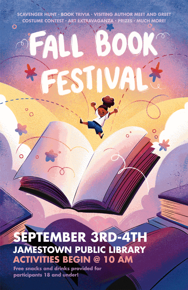 This illustrated poster was created for an event titled "Fall Book Fest". The poster was created to advertise a reading event being hosted within a local community.